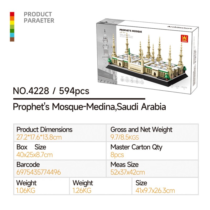 Wange - Mosquée du Prophète (Al-Masjid an-Nabawi) à Médine, Arabie Saoudite - Mini-jeu de construction en briques 4228 - 594 pièces
